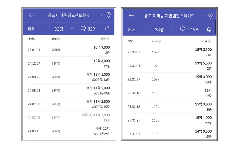 | 계약취소 | 84m2 | 103동 504호 | 936,200,000 (옵션 11,572,000) |