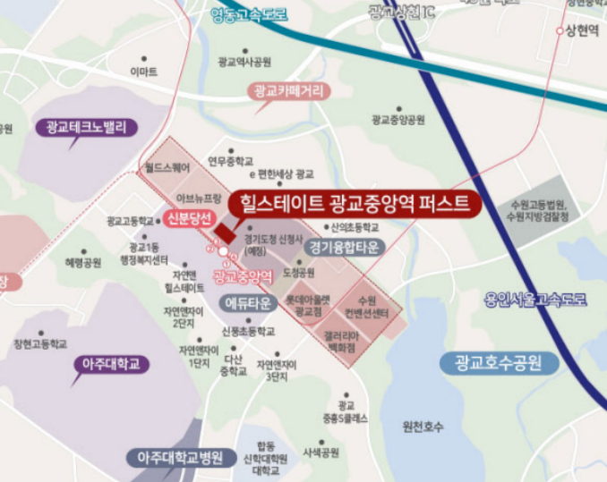 힐스테이트 광교중앙역 퍼스트는 광교신도시의 중심부에 위치한 단지로