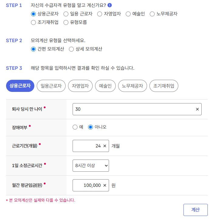 ✅ 실업급여 모의 계산기 무료 이용 방법